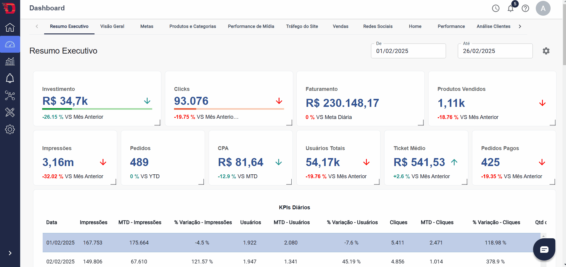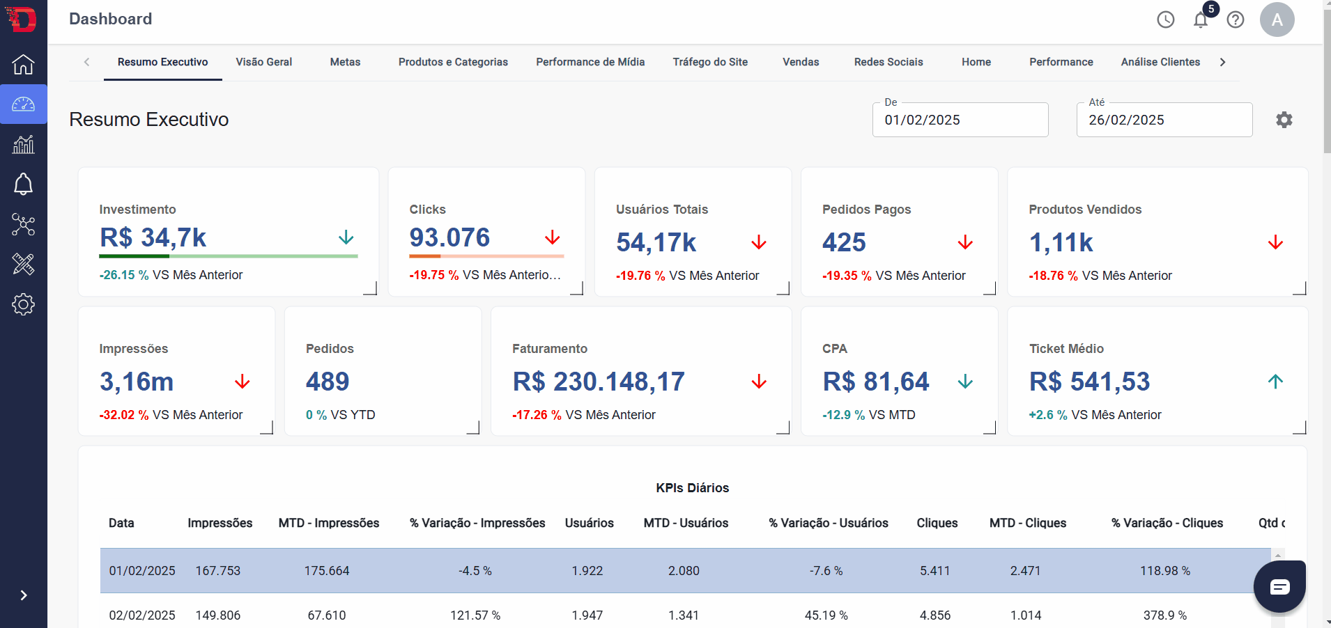 *MTD (Month to Date/Do mês até a data): É o período que vai do primeiro dia do mês atual e termina na data atual. Exemplo: se a data atual é 14 de fevereiro, o MTD é do dia 1º de fevereiro ao dia 14.